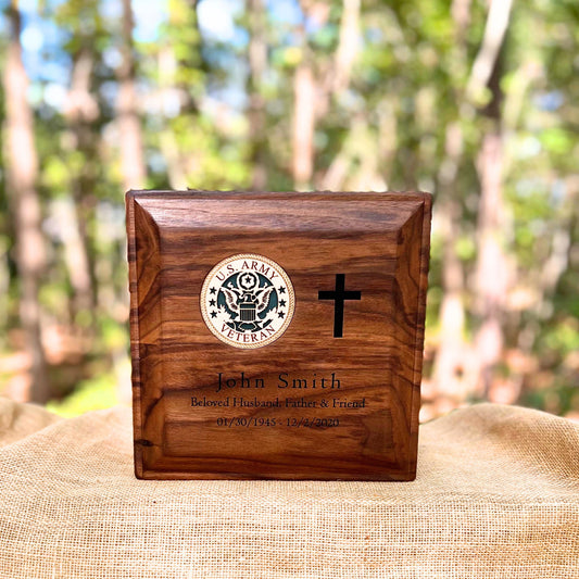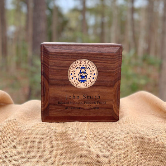 Custom military urns for all service branches. Unique, artistic solid wood urns...