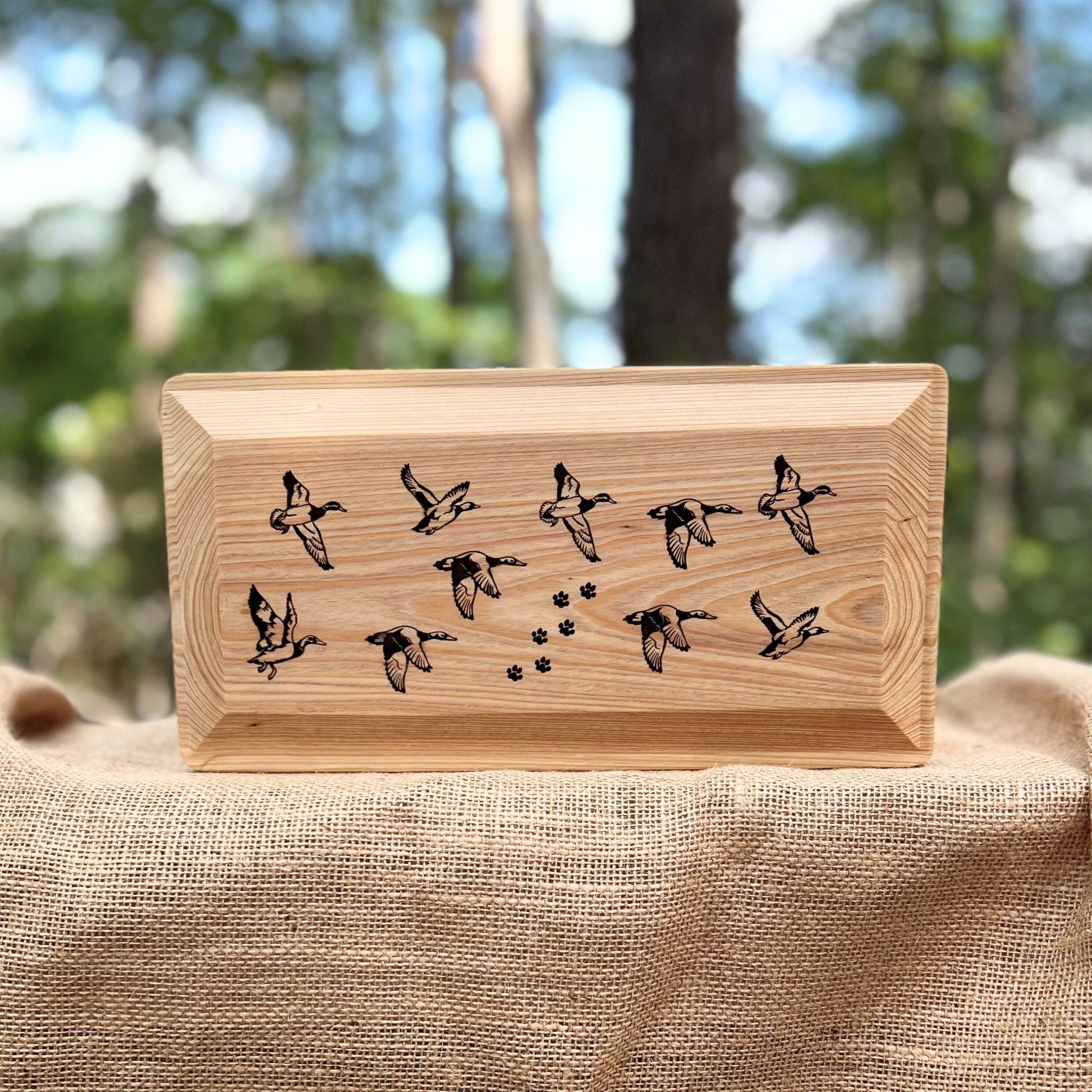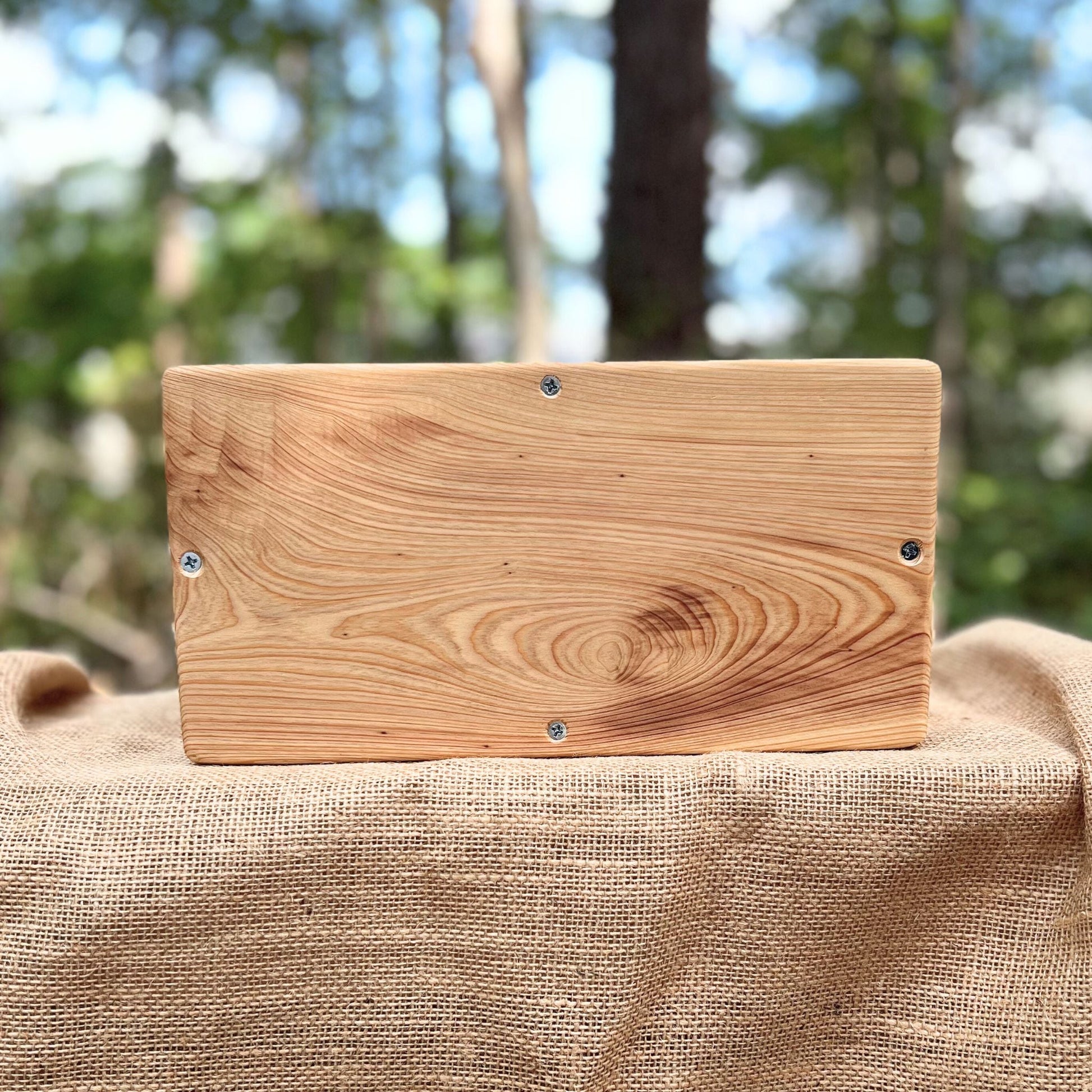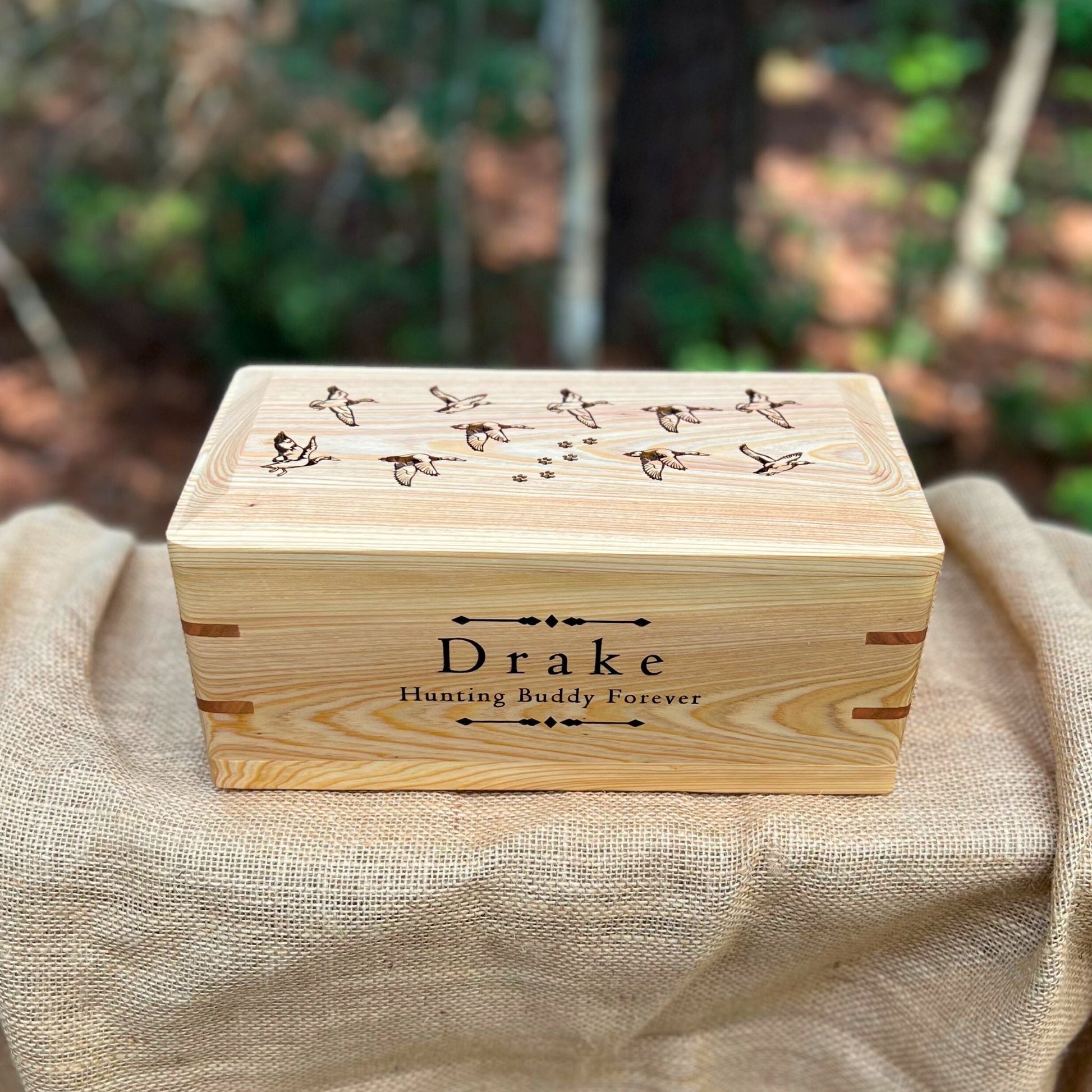Custom, handmade solid Cypress pet urn or memorial box with solid Cherry splines. Choose your size and customize the nameplate and top image. We make these urns with love and care as a final resting place for your beloved pet's cremains and/or keepsakes like a leash, collar, tags or small toy. Keep your pet's memory near with this beautiful memorial.